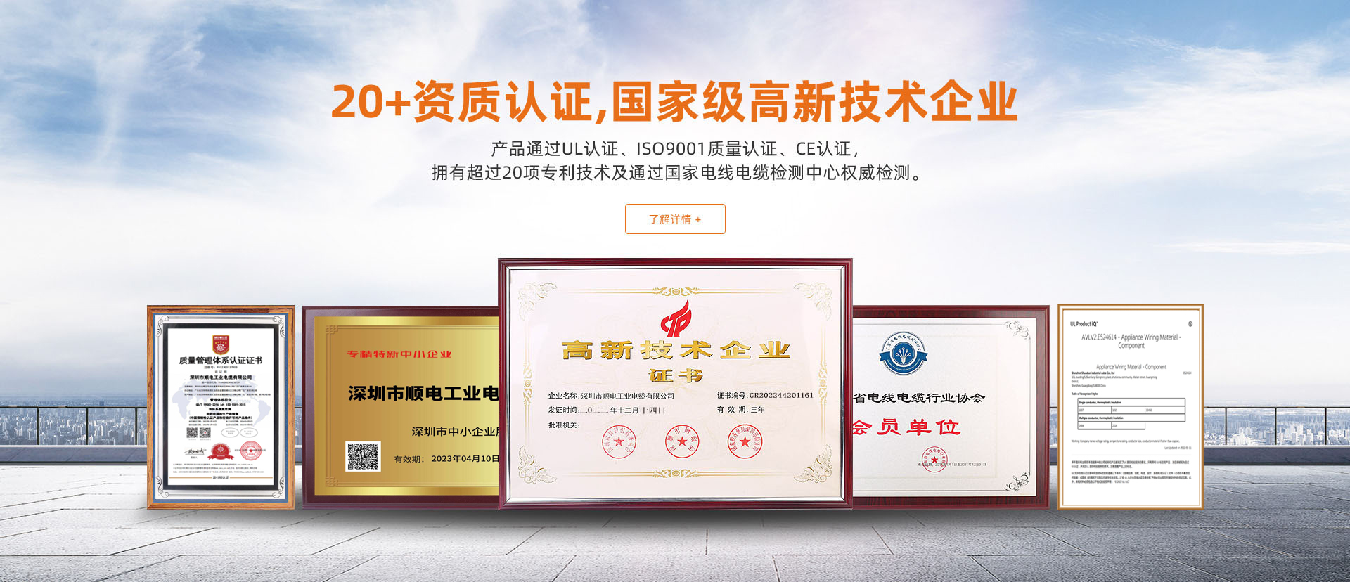 資質認證齊全,國家高新技術企業,15項專利技術產品通過UL認證、ISO9001質量認證、CE認證,擁有超過十五項專利技術及通過國家電線電纜檢測中心權威檢測。